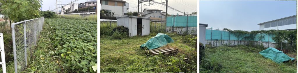 背丈の高い雑草がさつまいもの葉を覆い、風通しも日当たりもいまひとつ。これではお芋が太るどころか、病気の原因にもなってしまいます。