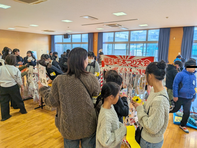 さらにその横では、イベント委員の皆さんによる「千本つり大会」も行われ、長蛇の列ができるほどの大盛況!「何が当たるかな?」とドキドキしながら紐を引く子どもたちの真剣な表情と、当たりが出た時の歓声が絶えず、室内は熱気にあふれていました。