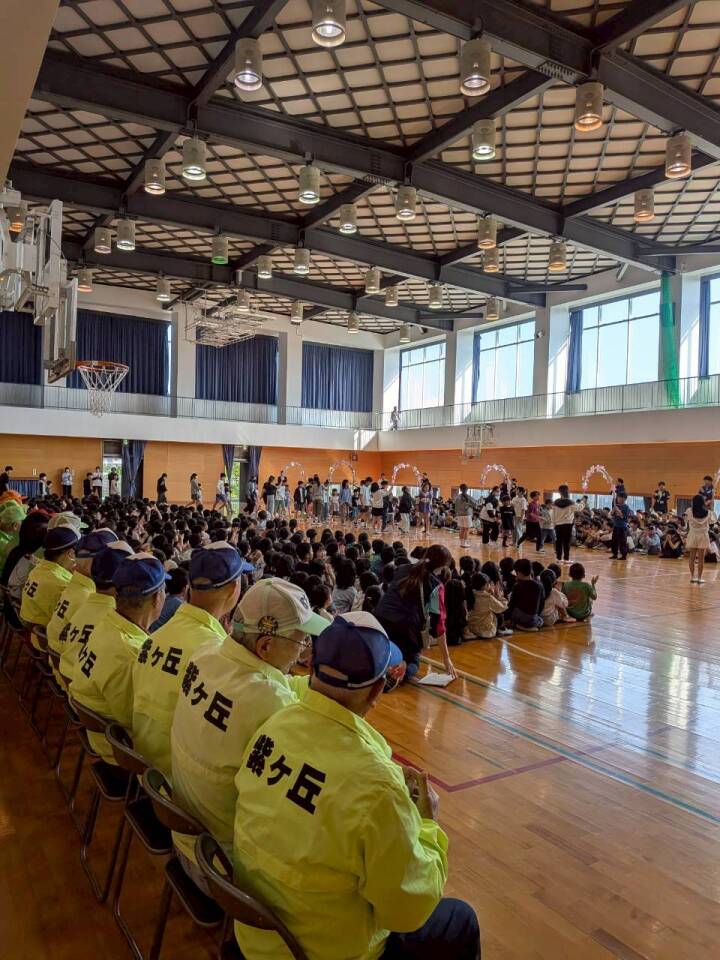 出発前には、体育館にて全体説明と顔合わせを行いました。 子どもたちの安全を守るため、チームワークもバッチリです。